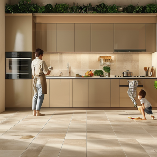 留缝宽度的选择要结合瓷砖规格和使用场景。客厅常用的 800×800mm 或 600×1200mm 尊王瓷砖,建议留缝 1-2mm,这个宽度既能隐藏施工时的细微误差,又不会让缝隙过于显眼,保持地面的整体感。厨房和卫生间的墙面瓷砖多为 300×600mm 规格,水汽环境下热胀冷缩更明显,留缝需放宽到 2-3mm,避免瓷砖边缘因挤压出现崩瓷。若选择仿古砖或木纹砖这类表面有凹凸纹理的尊王系列,留缝 3-5mm 更合适,能突出瓷砖的造型感,也方便后期清洁缝隙内的污渍。