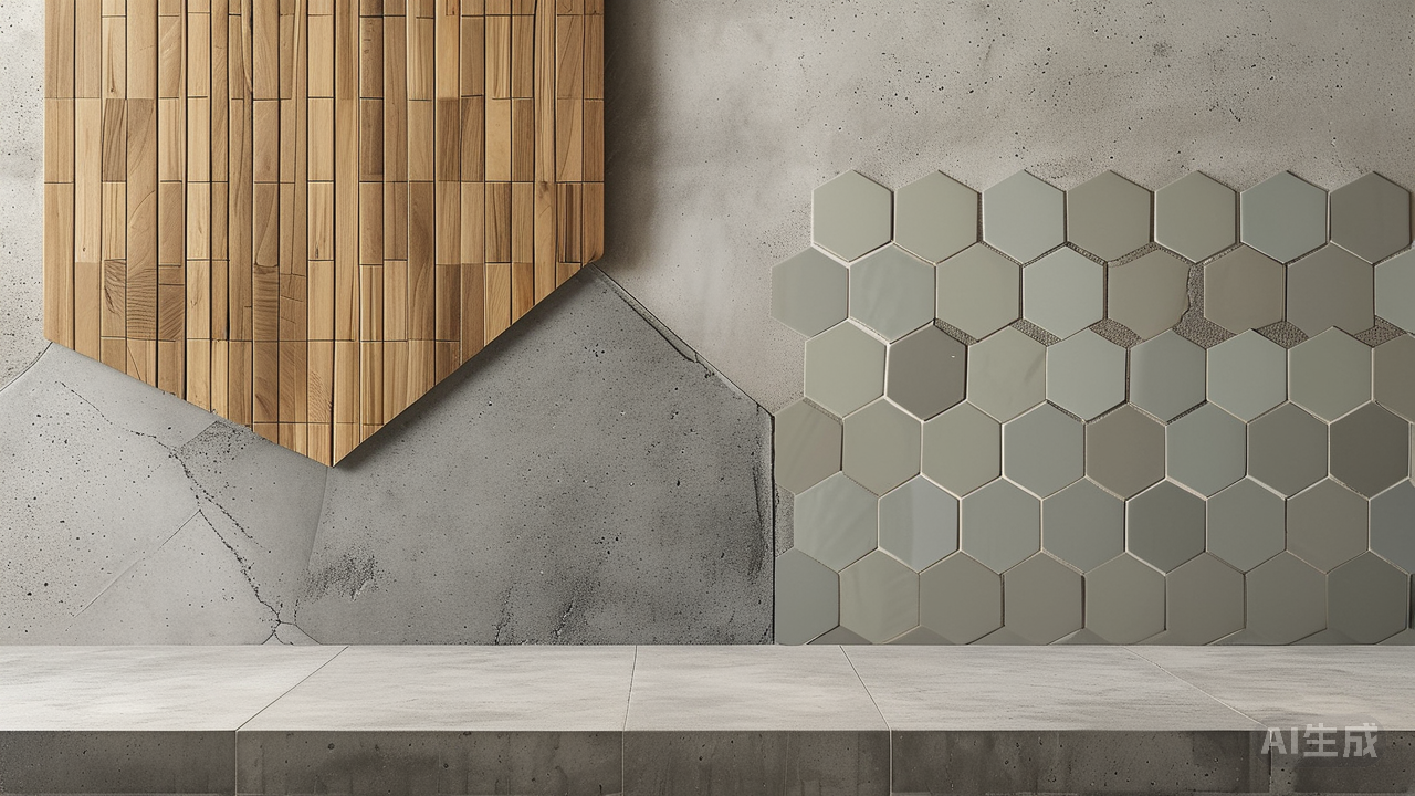 几何图形的巧妙运用能让素雅的空间焕发灵动气息。六边形蜂窝拼贴打破常规矩形格局,菱形斜铺则赋予动态视觉引导线。但切记要控制比例,建议局部点缀而非大面积使用,比如在玄关处拼出抽象图案,或者沿着楼梯踏步形成韵律感十足的装饰带。此时瓷砖更像是镶嵌在空间里的立体画作,成为点睛之笔而非视觉负担。
