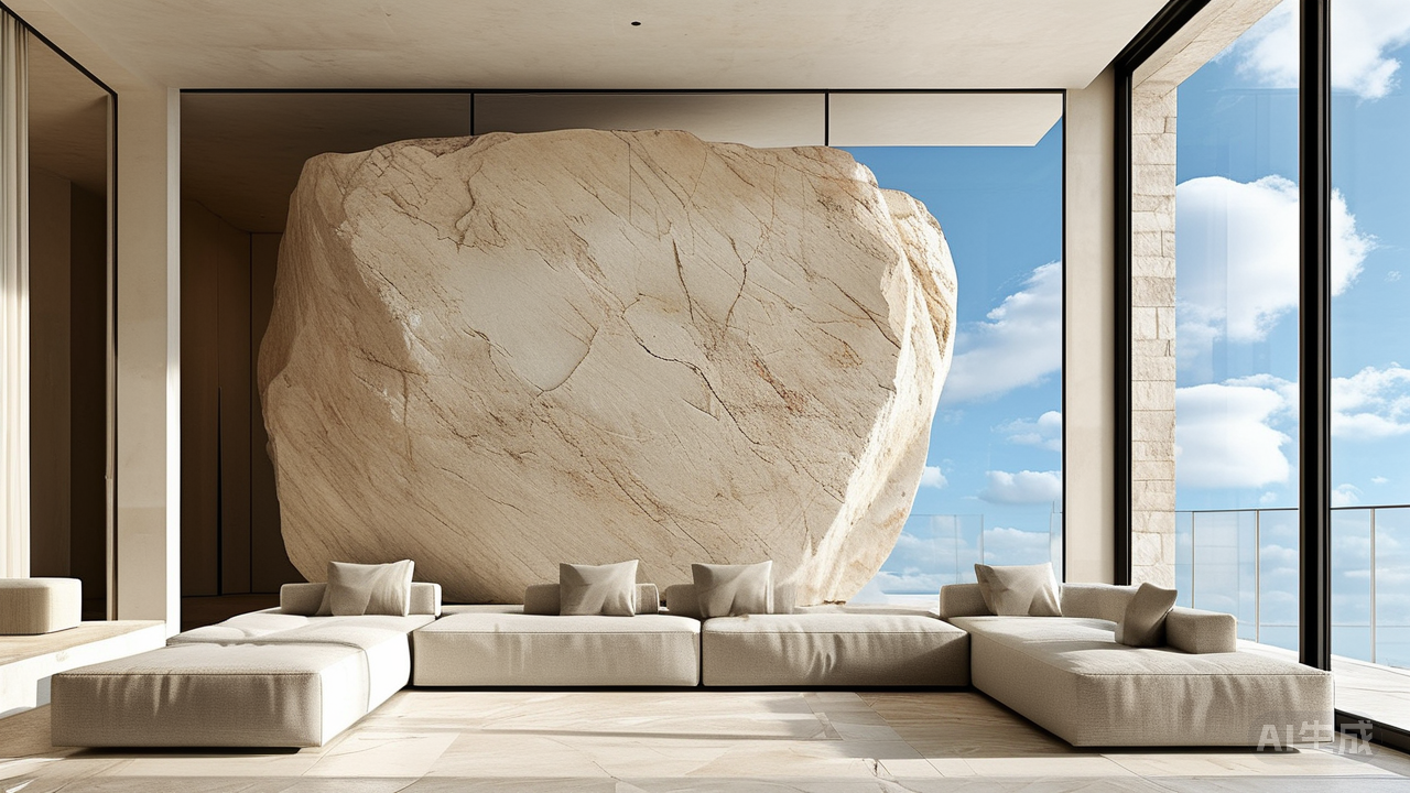 传统小砖拼接难免割裂空间整体感,而尊王大板的黄金比例(接近天然石材切割比)则完美适配现代大宅的开阔结构。单块面积达1.125㎡的超大尺寸,意味着更少的接缝、更完整的纹理延伸——无论是客厅地面如行云流水般的大理石纹路,还是背景墙上浑然天成的山水意境,都能实现“一石到底”的艺术效果。这种视觉上的延展性尤其适合层高优越的别墅或平层大宅,有效弱化吊顶与墙面的分界线,营造出挑空感十足的立体场域。