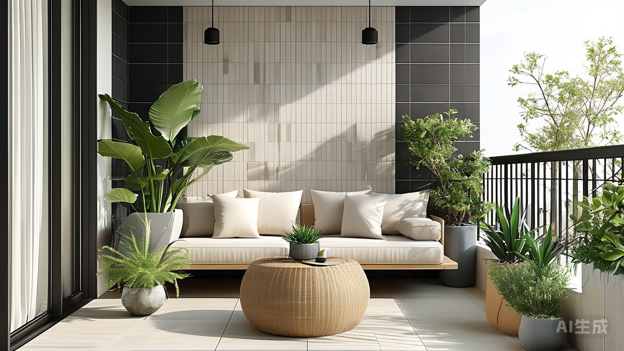 虽然实用性是首要考虑的因素,但也不能忽视美观性。阳台瓷砖的颜色应该与整体家居风格相协调,同时也要考虑光线的影响。浅色系可以使空间看起来更加明亮宽敞,深色系则能营造出沉稳大气的氛围。此外,还可以通过拼花、腰线等方式增加设计感,让阳台成为家中一道亮丽的风景线。不过需要注意的是,避免使用过于鲜艳刺眼的颜色,以免产生视觉疲劳。