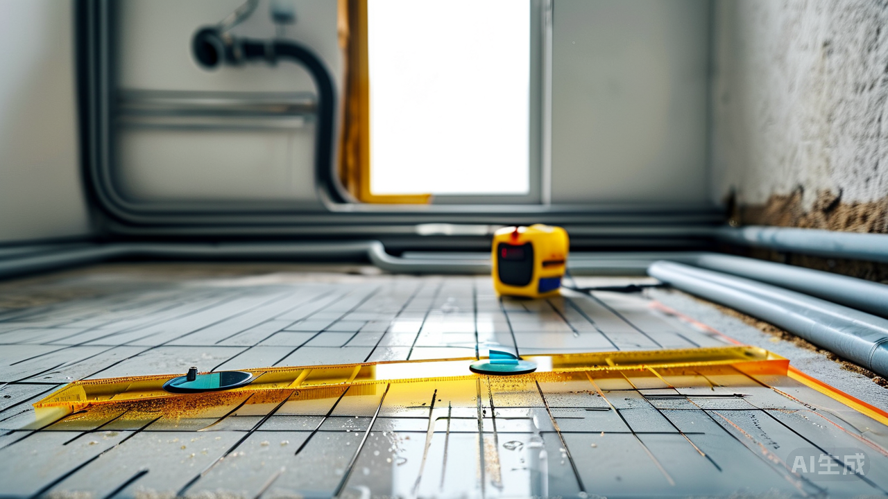 2️⃣ 精准找平校准坡度:使用激光水平仪测定基准线,卫生间地面应按0.8%-1%坡度向地漏倾斜(可用透明软管注水测试排水速度)。若原始基层误差超过5mm,必须用水泥砂浆重新找平。