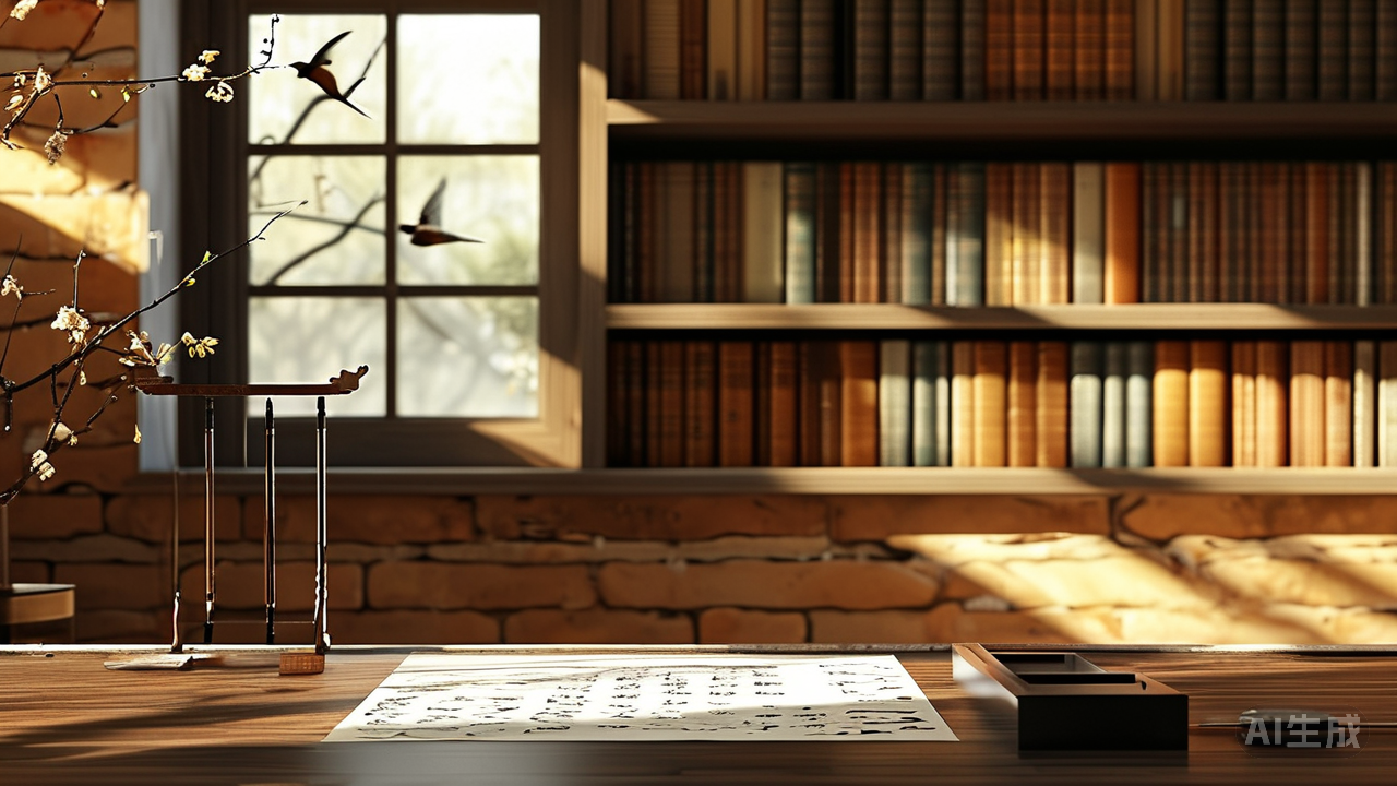 书房作为知识的殿堂,更需要这样一种充满文化底蕴的元素来点缀。一排排书架倚靠着贴满仿古砖的背景墙而立,书籍整齐陈列其间,每当阳光透过窗户洒在砖面上,光影交错间,那些古老的文字仿佛活了过来,诉说着人类的智慧传承。书桌上摆放着文房四宝,笔尖轻触宣纸发出的沙沙声与窗外偶尔传来的鸟鸣相互呼应,构成一曲美妙的生活乐章。此时,你手中的书页翻动声也成为了这旋律的一部分,在这样的环境中学习创作,灵感自会如泉涌般不绝。