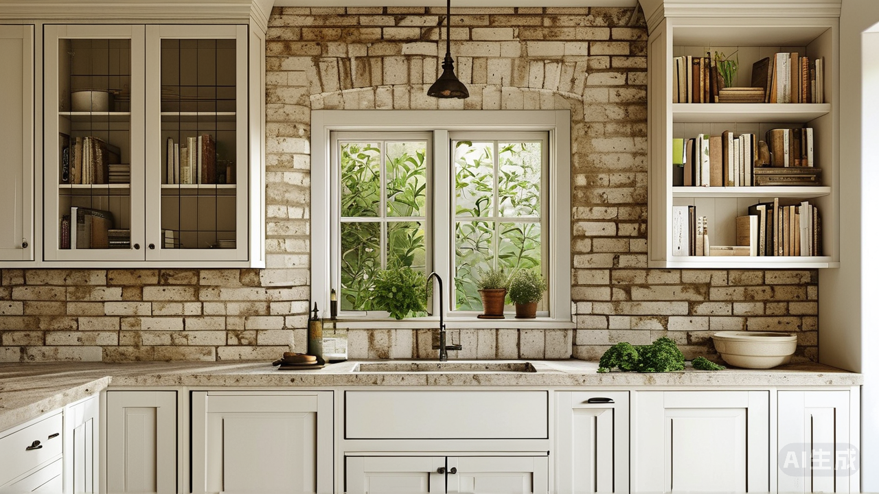 厨房也不再只是烟火之地,有了尊王仿古砖加持,多了几分雅致格调。白色橱柜搭配米黄色调仿古砖墙面,清爽之中透着自然质朴。烹饪时偶尔溅出的油星儿落在砖面上,并未显得突兀,反而融入那原本就带着生活痕迹纹理之中,见证着家人间平凡又珍贵的互动时刻。水槽旁侧特意选用防滑处理过的款式,既保证安全实用,又不失美观大方。忙碌之余抬眼望去,窗外绿植映衬下的这片小小天地,因着这复古文艺并存的设计,也成了治愈心灵的角落。