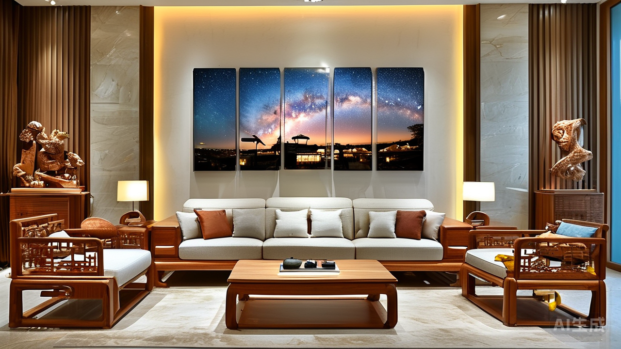 【银河幻影】系列的诞生,是尊王对“家”这一概念深刻理解后的匠心呈现。设计师们从浩瀚宇宙中汲取灵感,将星辰大海的壮丽景象巧妙融入家具的每一个细节之中。流线型的轮廓仿佛夜空中最亮的星轨,而表面采用的特殊材质处理技术,则模拟出璀璨星光的效果,随着光线角度的变化展现出不同的光影魅力,宛如把一片微型银河搬进了家中。这种独特的视觉体验,让每一件家具都成为了艺术品,赋予空间无限想象空间。