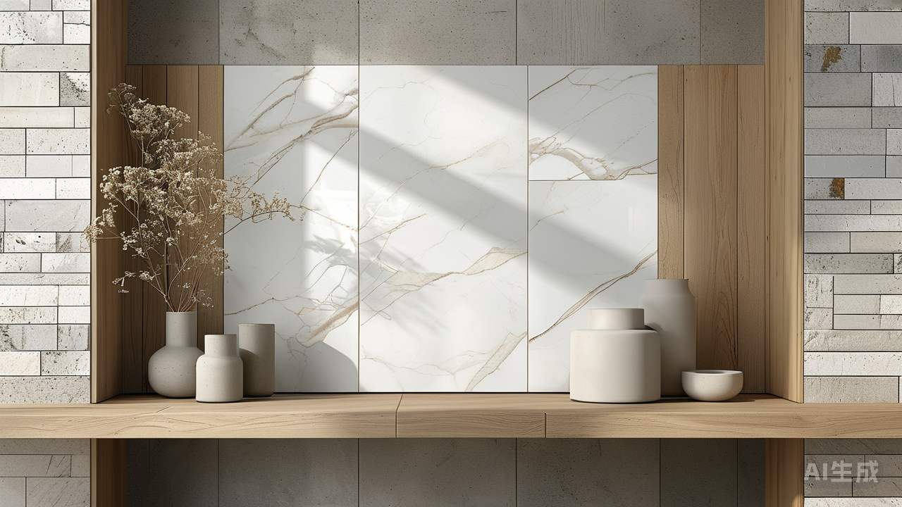 并非所有浅色瓷砖都能达到理想的扩容效果,关键在于材质的选择。推荐优先考虑表面带有细微纹理或哑光处理的产品。这类设计能有效避免镜面反射造成的杂乱错觉,同时通过柔和的光晕过渡,营造出层次丰富的立体画面。例如,仿水泥质感的浅灰砖自带工业美学气息,搭配原木色家居单品,既能保持清爽基调,又增添了几分温暖的人文关怀;而带有大理石纹路的白色瓷砖则更适合打造轻奢氛围,其天然肌理如同水墨画般舒展,无形中拉伸了纵向视线。